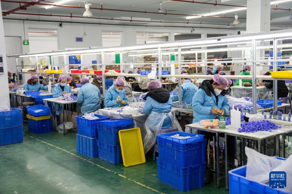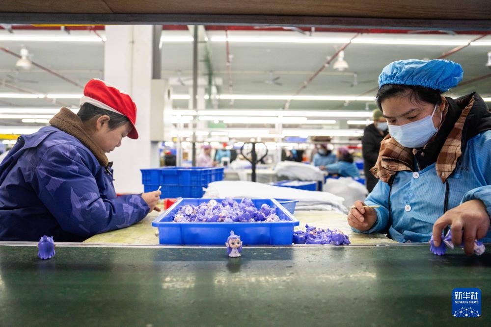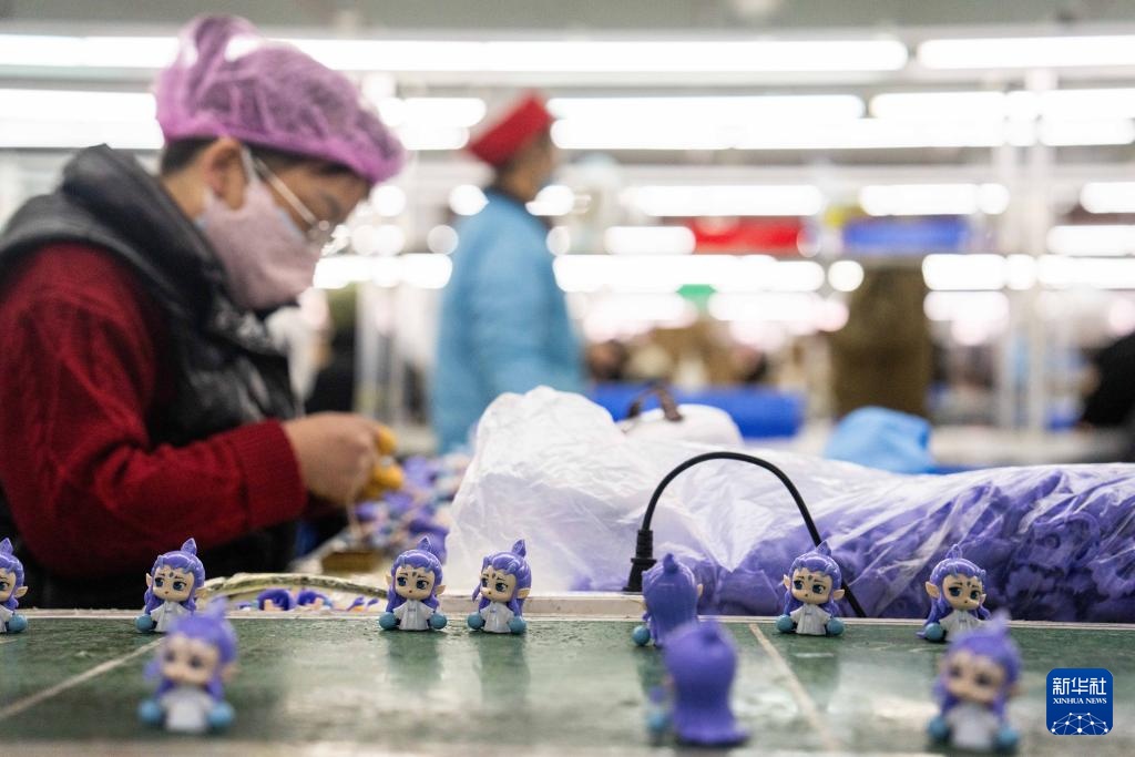 这是2月8日在坐落湘潭归纳保税区的湖南桑尼森迪玩具制作有限公司拍照的“哪吒”系列周边玩具出产现场。